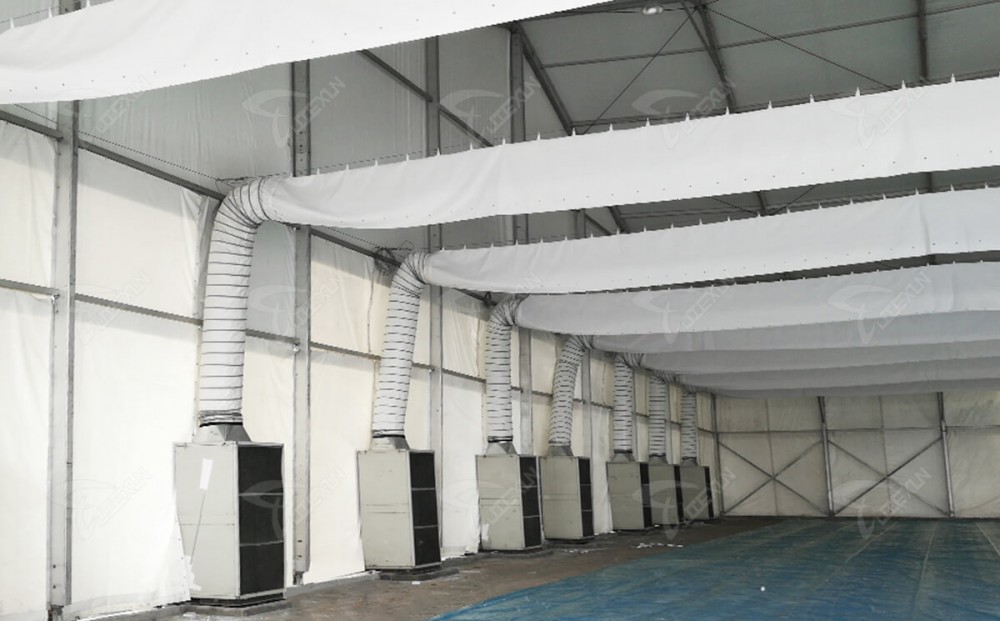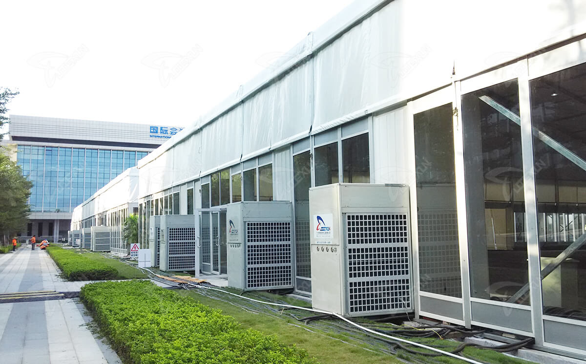 可擴(kuò)展的篷房不僅僅體現(xiàn)在面積的擴(kuò)大延伸,還有其它配件適應(yīng)能力,如空調(diào)租賃。篷房在不同使用方案的情況下,需要用到的配件不一樣:空調(diào)租賃能提供降溫,布幔能提供空間感,燈光音響能營(yíng)造各種各樣的氛圍。