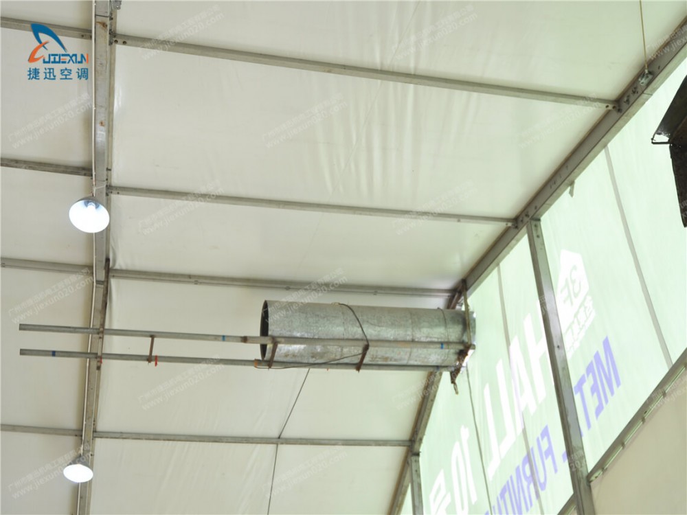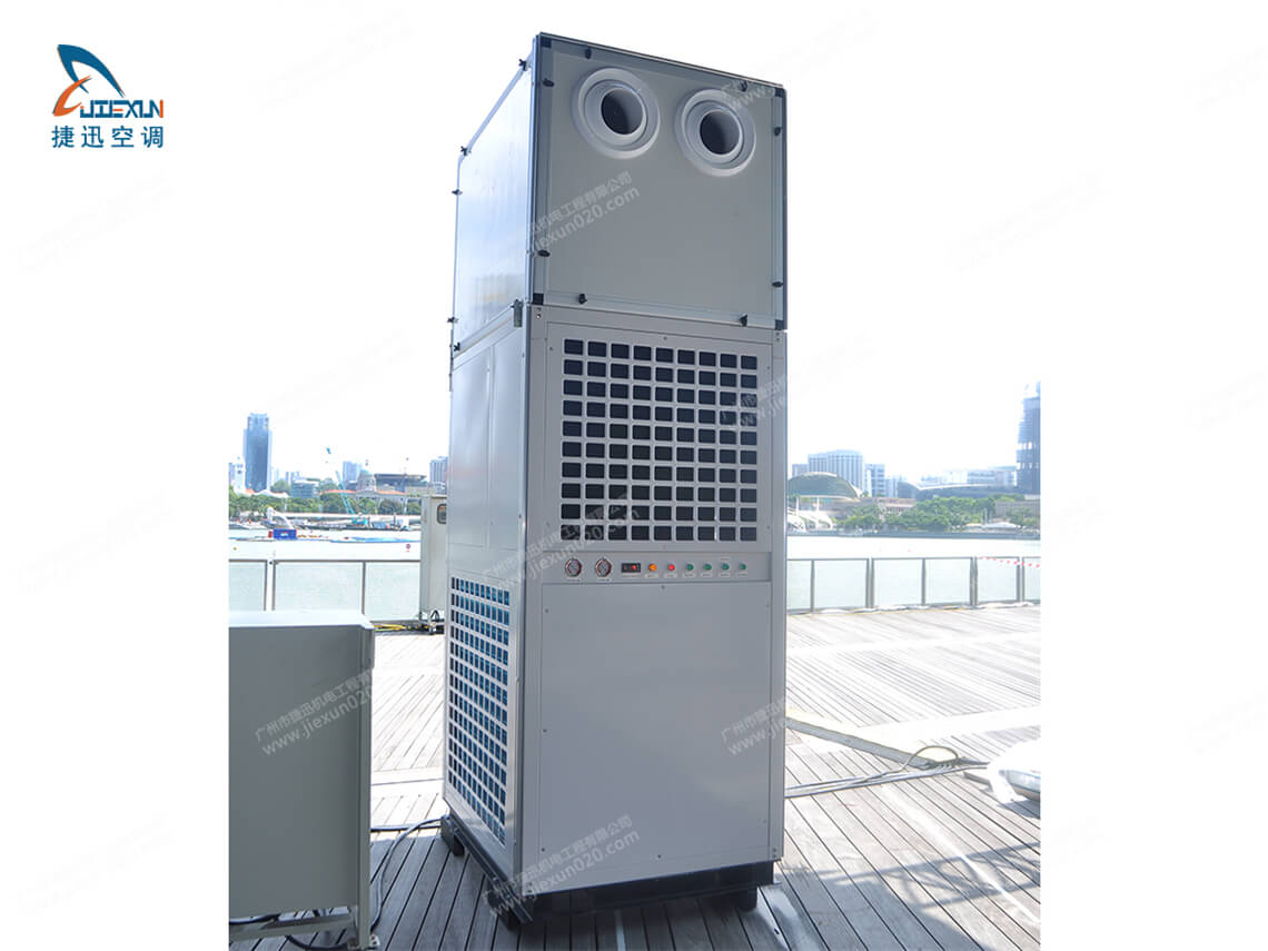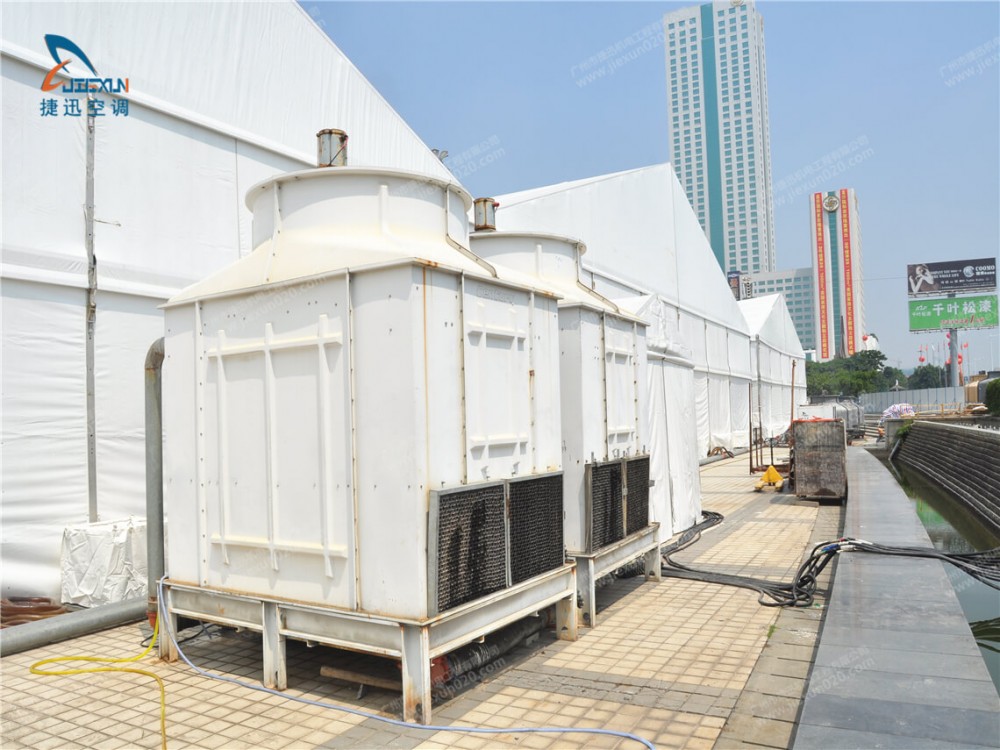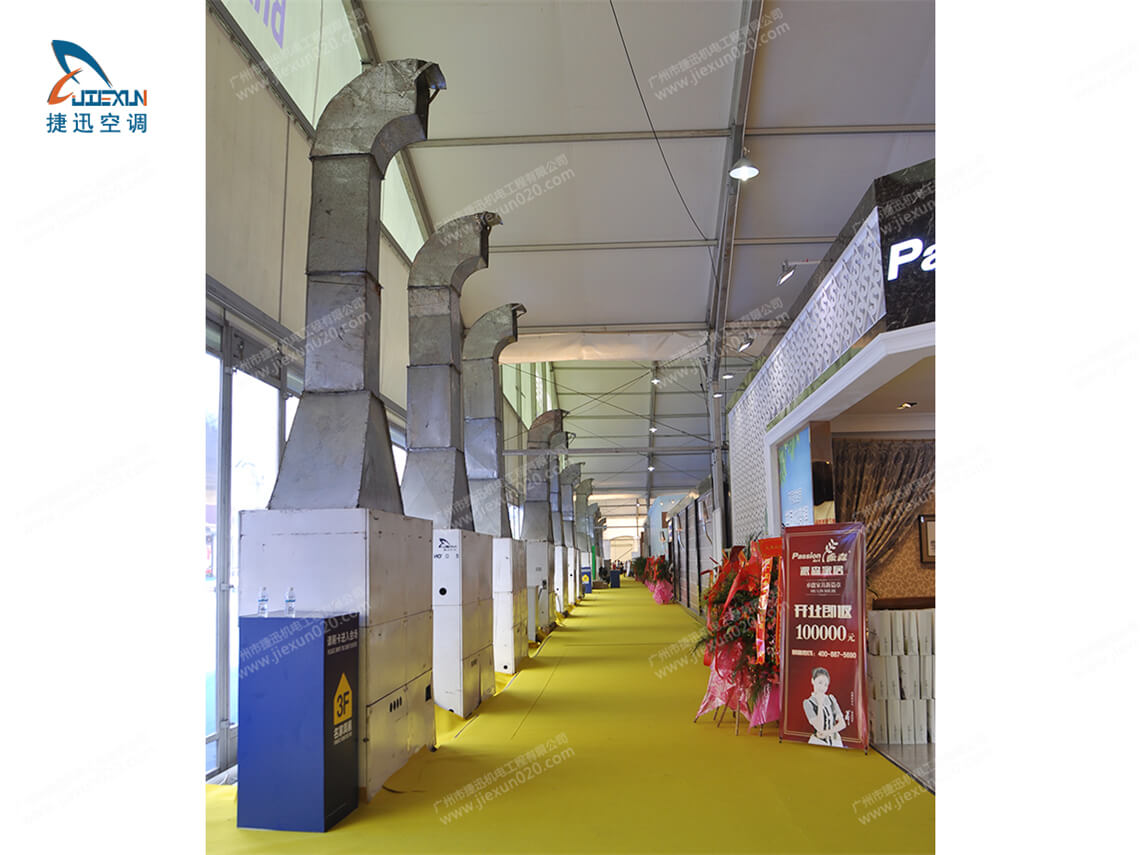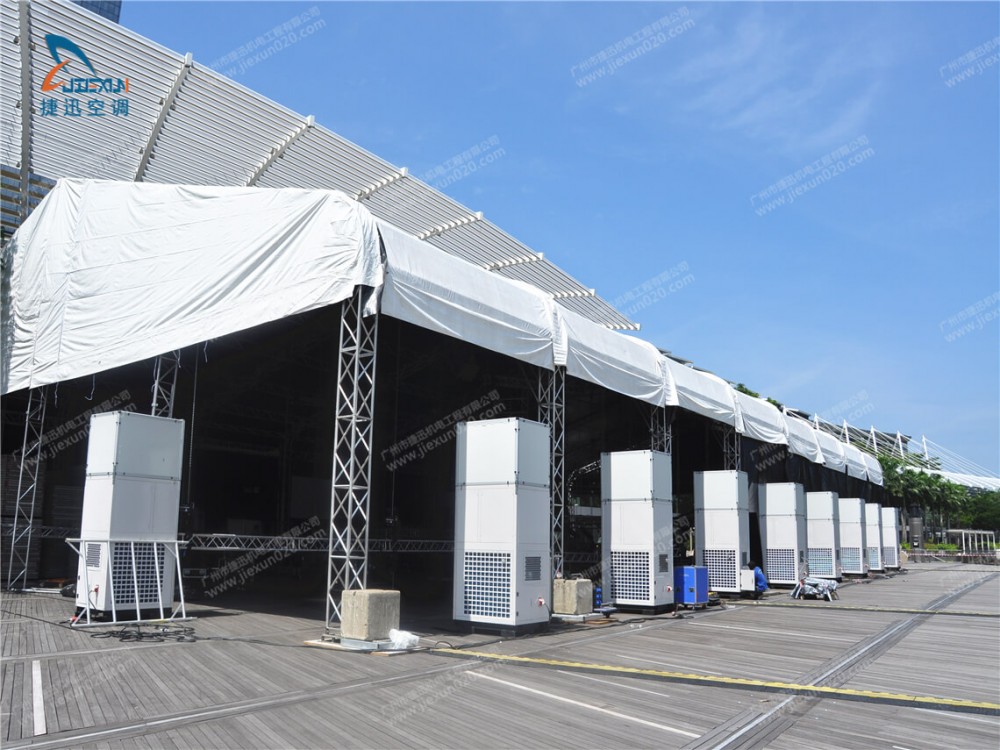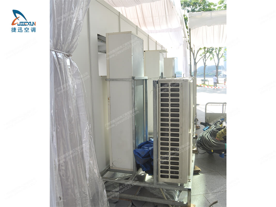 慶典空調(diào)出租由捷迅機電租賃公司提供,通過多臺大型租賃發(fā)電機供電,分布到各個點的篷房空調(diào)。篷房空調(diào)使用的都是純風(fēng)冷、25匹規(guī)格,以自帶風(fēng)箱引導(dǎo)出風(fēng)方式,大面積覆蓋慶典現(xiàn)場。