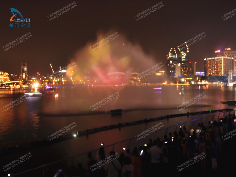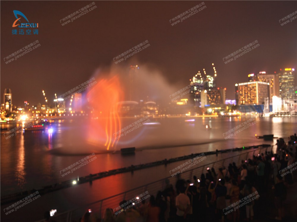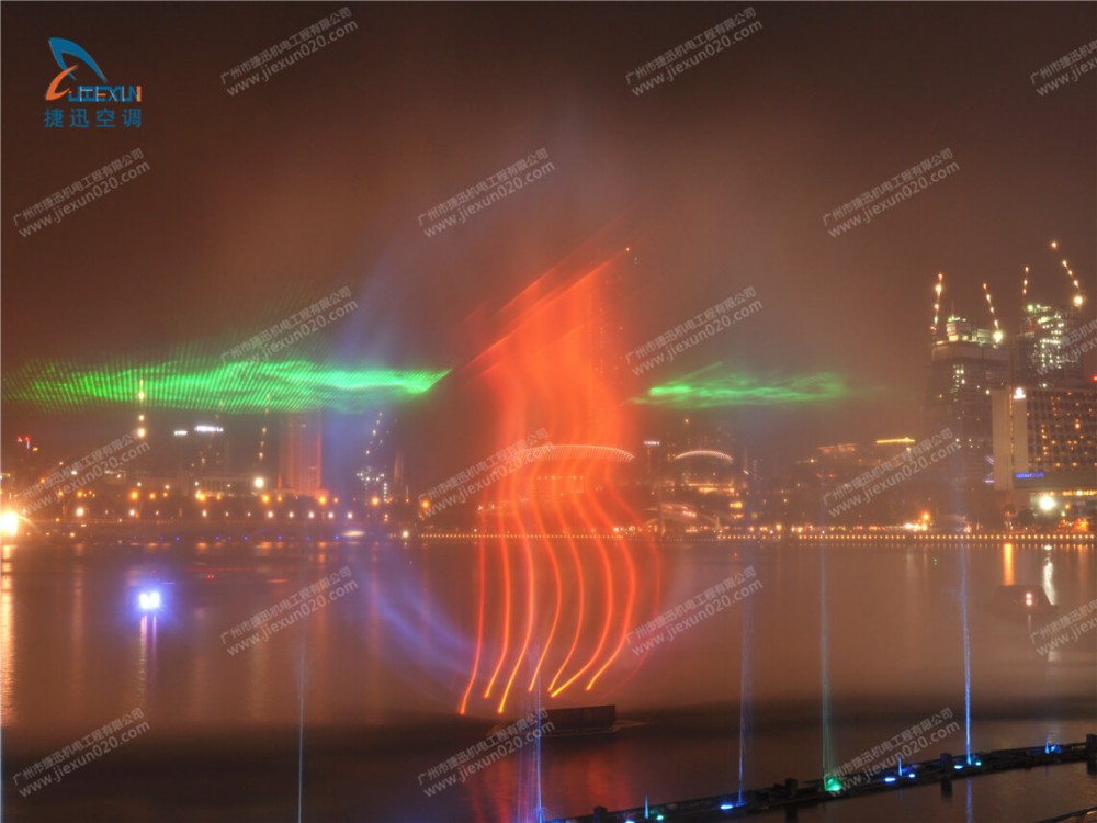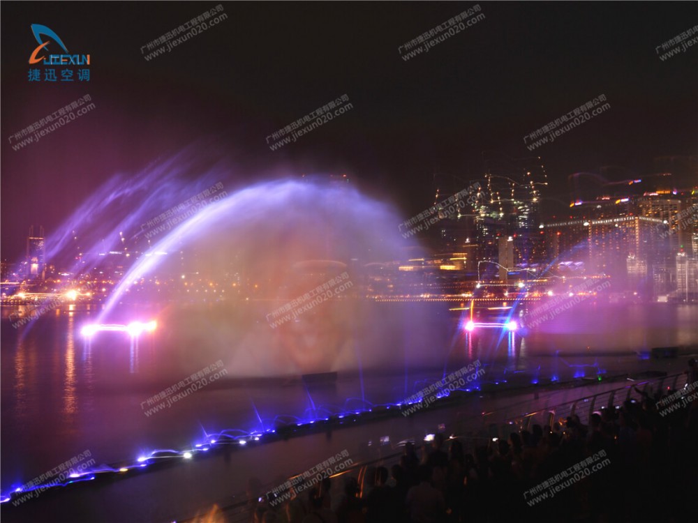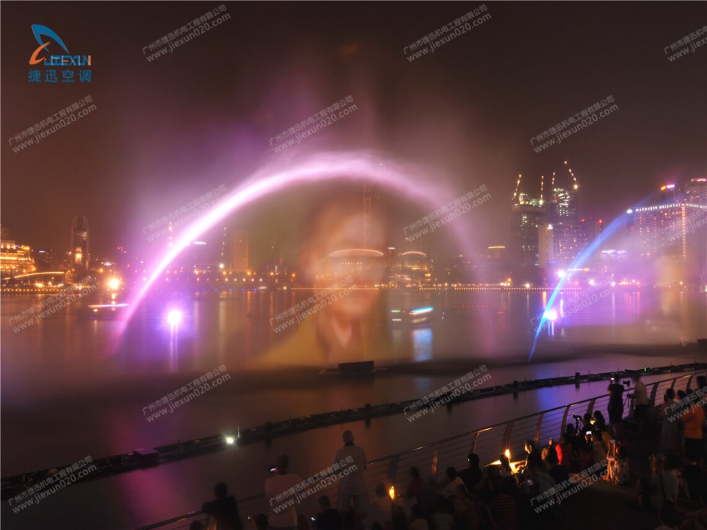 晚會最勁爆的節(jié)目就是水幕投影。水幕投影是在水池中的水槍噴射形成的水幕上投射影像,投射的影像是歷代優(yōu)秀領(lǐng)導(dǎo)人物。