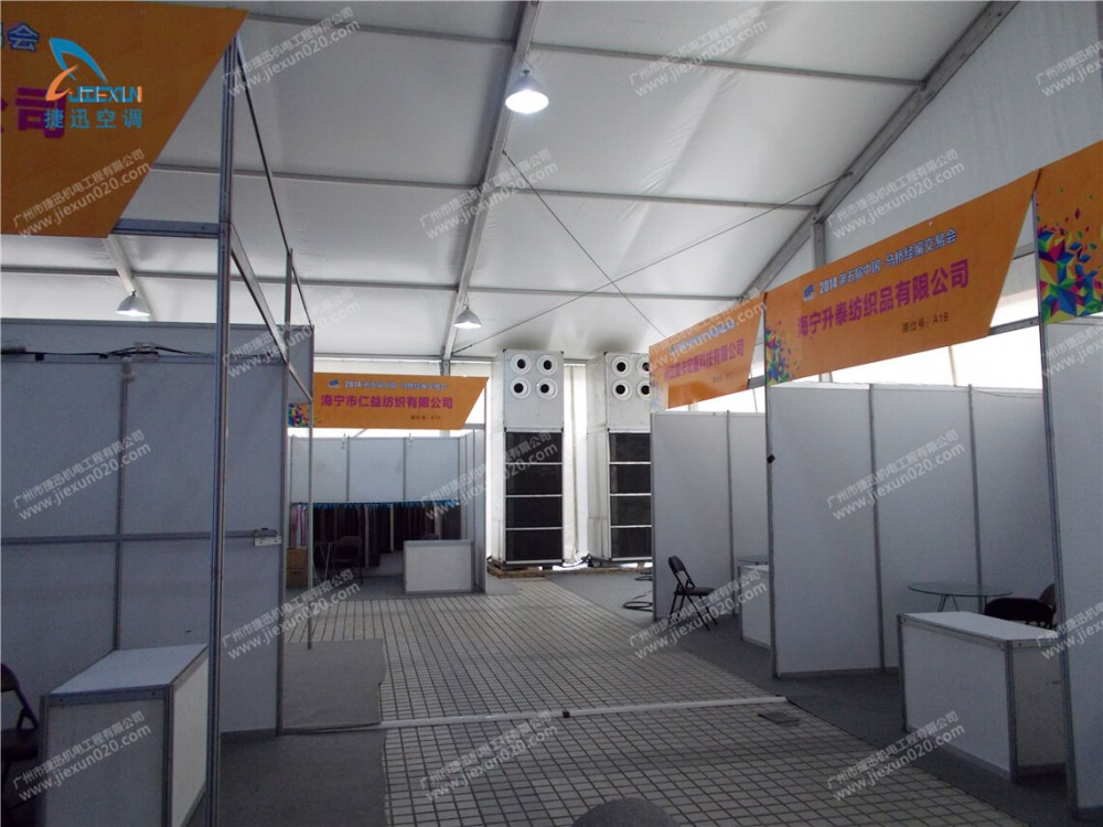 2014馬橋經(jīng)編交易會出租空調(diào),捷迅則以純風(fēng)冷空調(diào)為全權(quán)方案,純風(fēng)冷出租空調(diào)的特點是通過風(fēng)交換,吹出來的風(fēng)是干風(fēng),相比水冷空調(diào),吹出來的風(fēng)是濕冷的,容易對經(jīng)編交易會上的參展商的參展產(chǎn)品造成破壞。所以捷迅純風(fēng)冷一體式空調(diào)出租則解決了這個難題,使得室內(nèi)不但涼爽而且不潮濕。